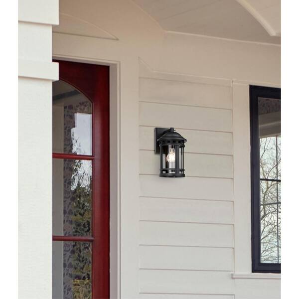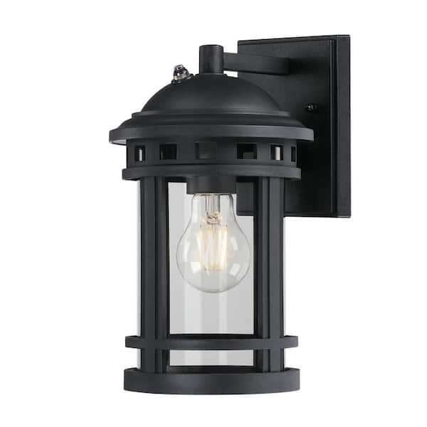 Belon 1-Light Black Outdoor Wall Mount Lantern with Clear Glass, Dusk to Dawn Sensor