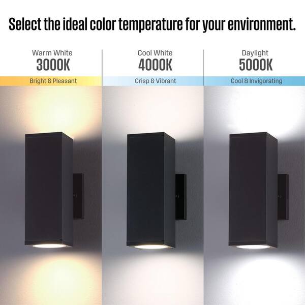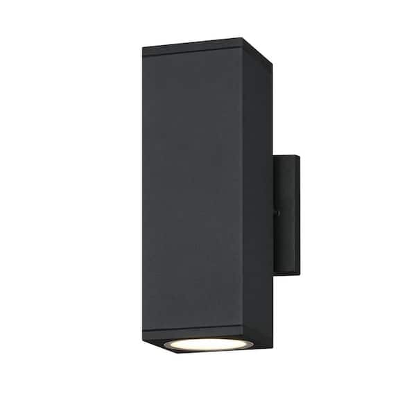 Nottawa 10.25 in. Black Outdoor Hardwired Dimmable LED Cylinder Wall Sconce with Selectable Color Temperature.