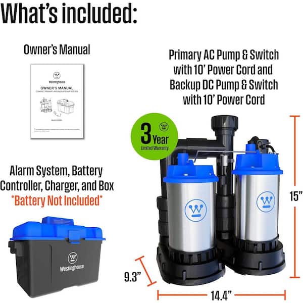 WH50BBU 1/2 HP Sump Pump Battery Backup System 5200 GPH