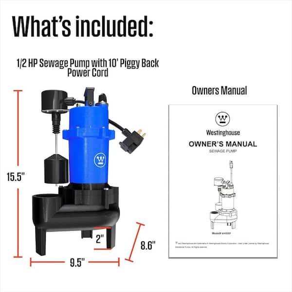 WH50SP 1/2 HP Submersible Sewage Pump 6500 GPH