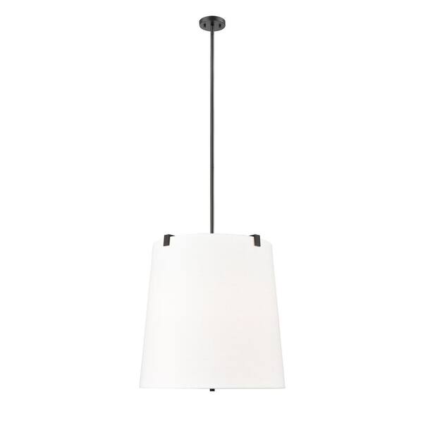 Weston 24 in. 6-Light Matte Black Shaded Pendant Light with White Linen Fabric Shade, No Bulbs Included