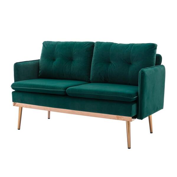 55.91 in Wide Square Arm Unique Design Modern COOLMORE Accent Velvet Straight Loveseat Sofa With Stainless Feet in Green