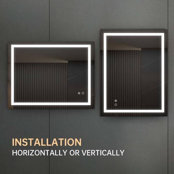 27.6 in. x 35.4 in. LED Rectangular Frameless Anti-Fog Separately Control Wall Mount Bathroom Vanity Mirror in Silver