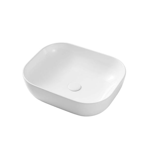 White Ceramic Rectangular Vessel Sink with One Pop-Up Drain Included