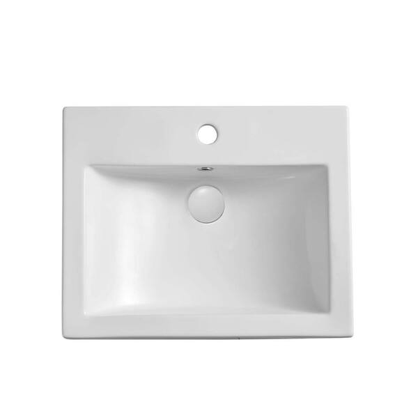 White Ceramic Rectangular Vessel Sink with Pop-Up Drain Included