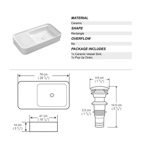 White Ceramic Rectangular Vessel Sink with Pop-Up Drain Included