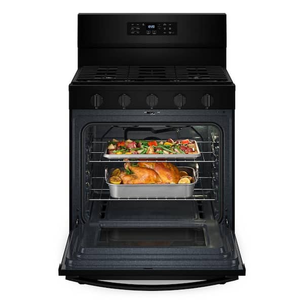 30 in. 5 Burners Freestanding Gas Range in Black with Air Cooking Technology