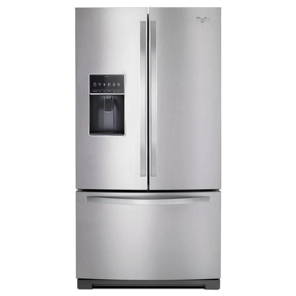 Store your family's fresh and frozen favorites with Whirlpool brand's 27 cu. ft. French Door Bottom Freezer refrigerator. And thanks to the StoreRight system, this French door bottom freezer refrigerator keeps food fresh and helps reduce freezer burn with an advanced dual cooling system. Organize items your way with the Triple Crisper's three storage bins. This refrigerator with ice and water dispenser gives you easy access to great tasting ice and water filtered with an EveryDrop water filter. Plus, easily load and reach your family's favorite frozen pizza inside the Pizza pocket for added convenience.
