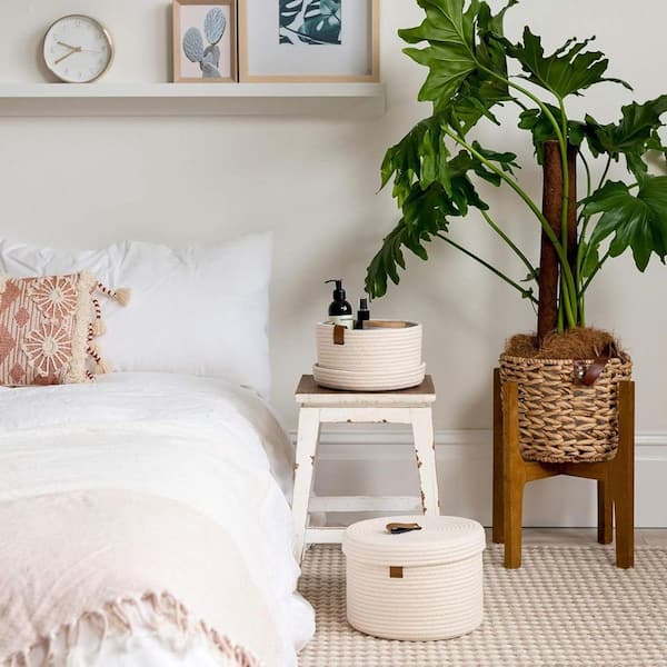 White 11 in. x 6.5 in. Cotton Decorative Basket Set of 2 with Lids