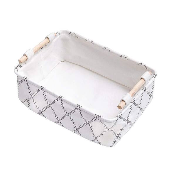 White 12.6 in. x 4.7 in. Fabric Decorative Basket Set of 3 with Wooden Handles