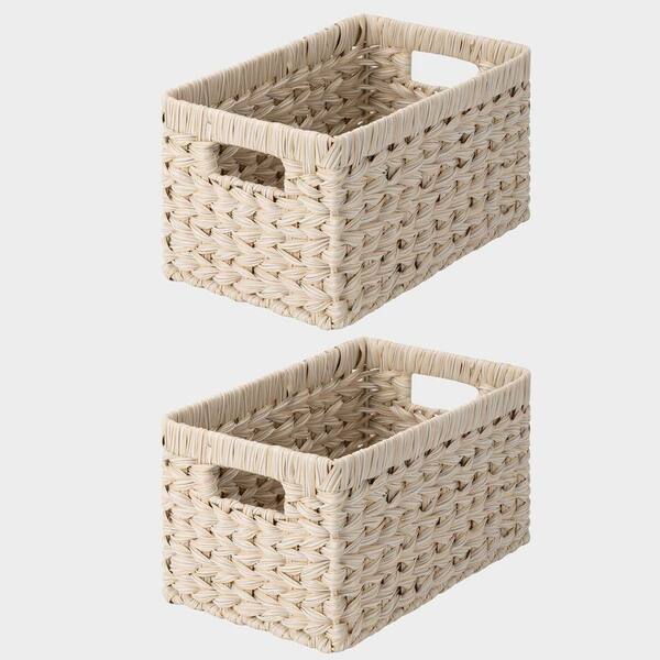 White 13 in. x 7 in. Polypropylene Decorative Basket Set of 2 with Lid