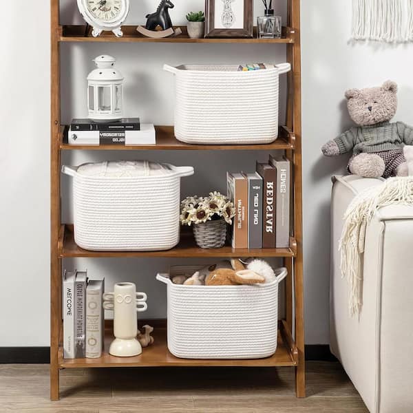 White 13 in. x 9 in. Cotton Decorative Basket Set of 2 with Handles