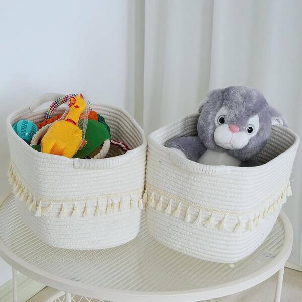 White 15 in. x 8.6 in. Cotton Decorative Basket Set of 3