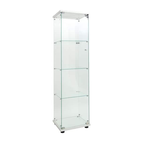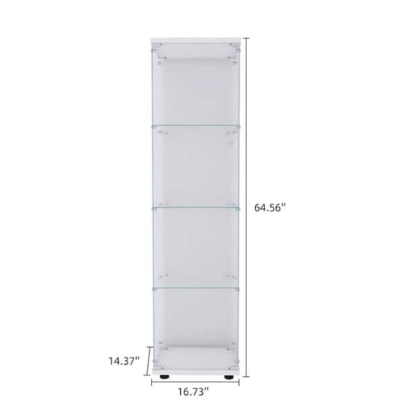 White 16.73 in. x 64.56 in. Glass Lighted 4-Tier Shelves Decorative Glass Display Cabinet