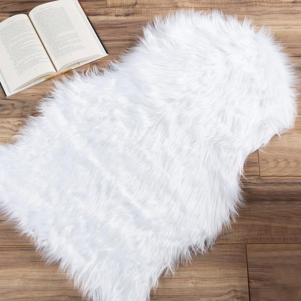 White 2 ft. W x 3 ft. L Faux Sheepskin Fur Accent Rug
