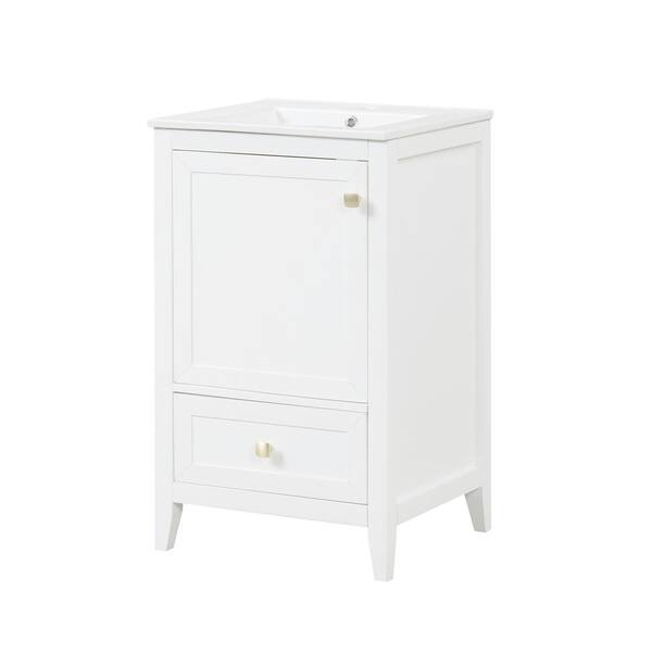 White 20 in. W Bathroom Vanity with Sink, Bathroom Cabinet with Soft Closing Door, Storage Rack and A Drawer