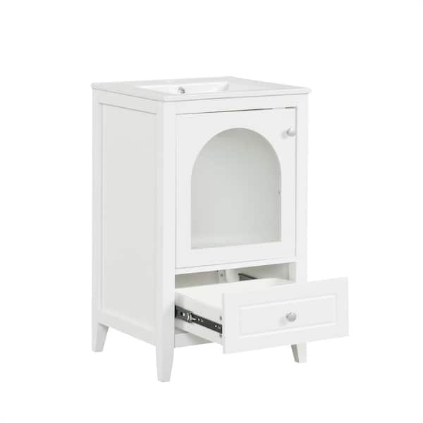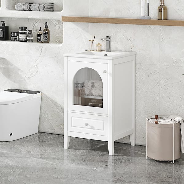 White 20 in. W Bathroom Vanity with Sink, Bathroom Cabinet with Soft Closing Glass Door, A Drawer