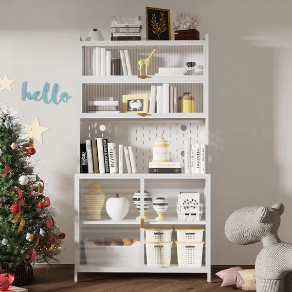 White 31.5 in. W Steel Kitchen Tray, Storage Cabinet with Pegboard, Anti-Tip Design