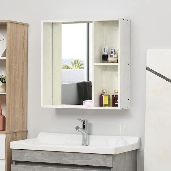 White 31.5 in. W x 25.5 in. H Cottage Rectangle MDF Framed Mirror Wall Mirror Bathroom Mirror