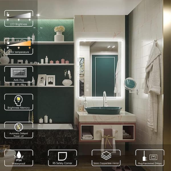 White 32 in. W x 24 in. Modern Rectangle LED Wall Mirror with Adjustable Color Temperatures and Anti-Fog for Living Room