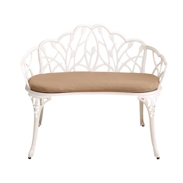 White 34.2 in. W x 21.2 in. L x 30.7 in. H Cast Aluminium Park Bench with Beige Cushion