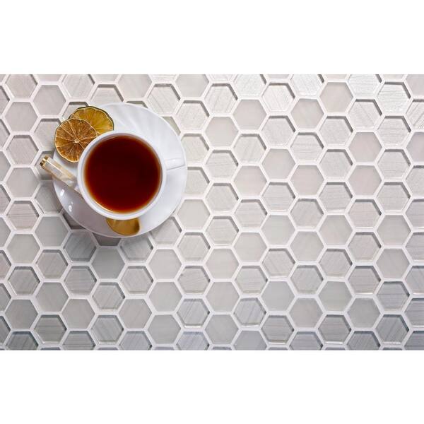 White 4 in. x 5 in. Polished and Honed Hexagon Glass Mosaic Tile Sample (0.13 sq. ft./Piece)