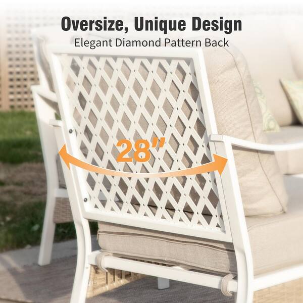 White 6-Piece Metal Outdoor Patio Conversation Seating Set with 50000 BTU Propane Fire Pit Table and Beige Cushions