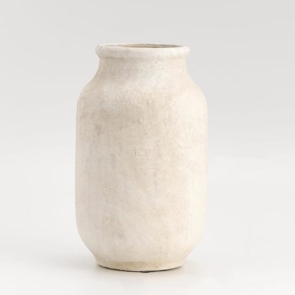 White 9.5 in. Ceramic Large Vase, Pottery Decorative Flower Vase