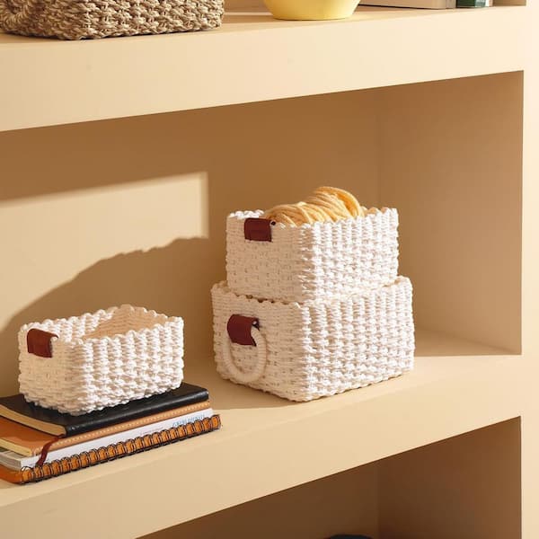 White 9 in. x 4.7 in. Paper Decorative Basket (Set of 3)