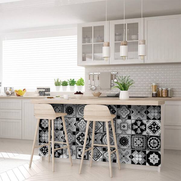 White, Black M4 7 in. x 7 in. Vinyl Peel and Stick Tile (24 Tiles, 8.17 sq. ft./Pack)