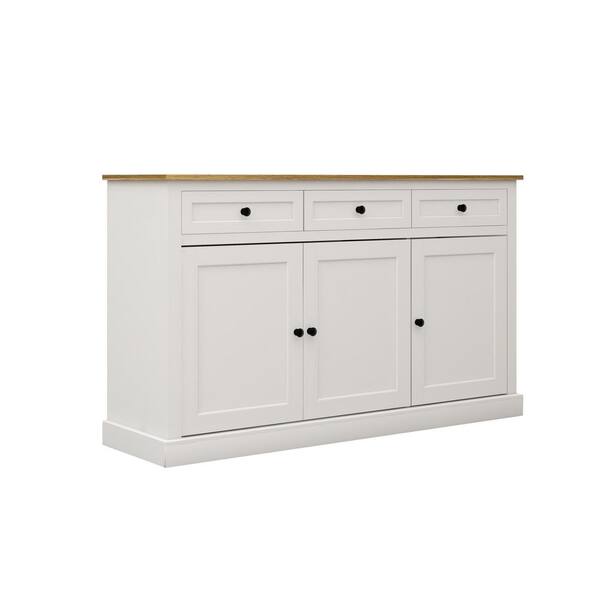 White Buffet Cabinet Storage Sideboard with 3 Drawers & 3 Doors Adjustable Shelves for Living Room, Dining Room, Kitchen