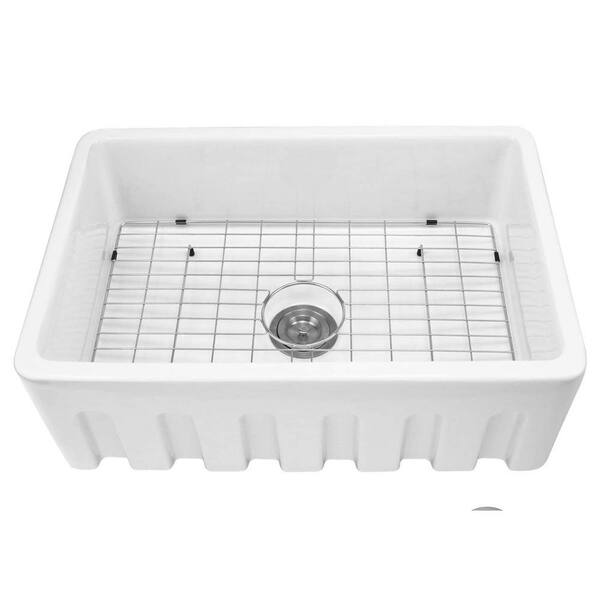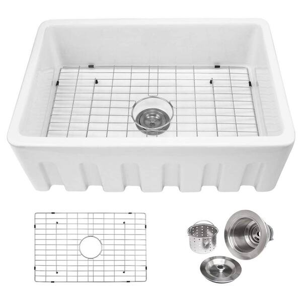 White Ceramic 30 in. Single Basin Farmhouse Apron Workstation Kitchen Sink with Basket Strainer