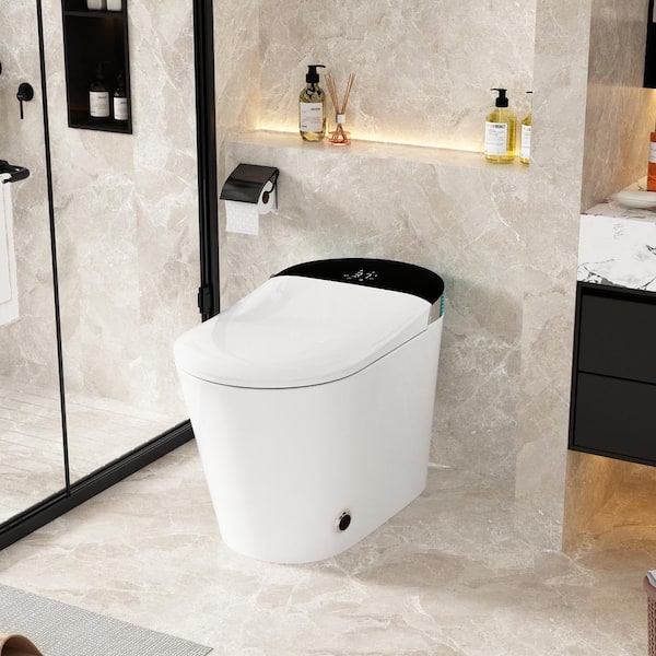 White Elongated Smart Bidet Toilet 1.28 GPF with Auto Open Sensing, Massage Cleaning, Kid Mode, Warm Water Sprayer Dryer