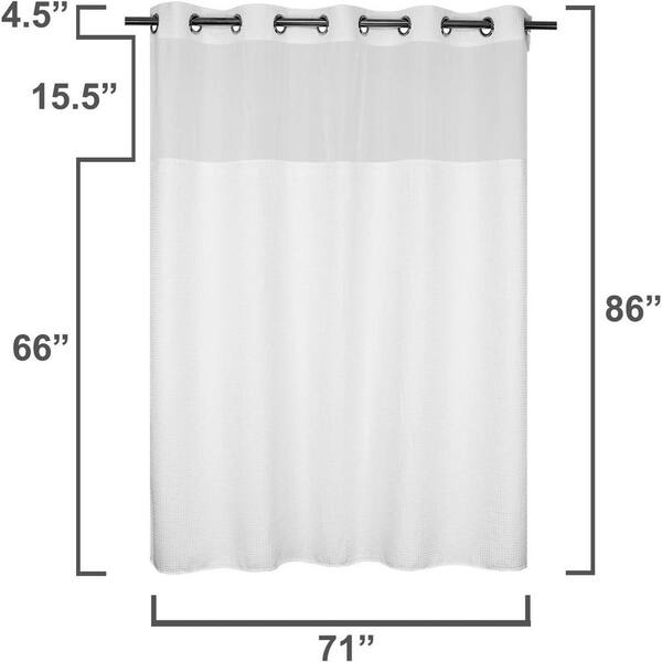 White Fabric Shower Curtain Set 71 x 86 Cotton Blend Waffle Weave with Snap in Replacement Liner Water Repellent