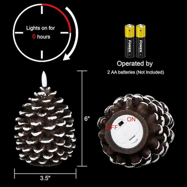 White Flameless Candles with Battery Powered Flickering 3D Wick Real Wax Pine Cone Candles, Set of 2
