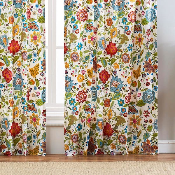 White Floral Rod Pocket Sheer Curtain - 42 in. W x 84 in. L