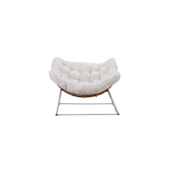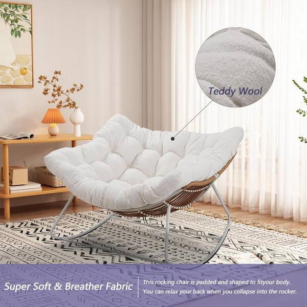 White Frame Metal Outdoor Rocking Chair with Light White Cushion For Backyard, Patio, Poolside