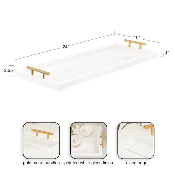 White Halsey Rectangle Decorative Tray with Gold Metal Handles Modern Glam Slim Serving Tray