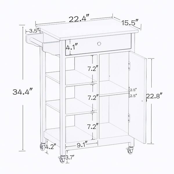 White Kitchen Island Rolling Trolley Cart with Towel Rack Rubber Wood Table Top