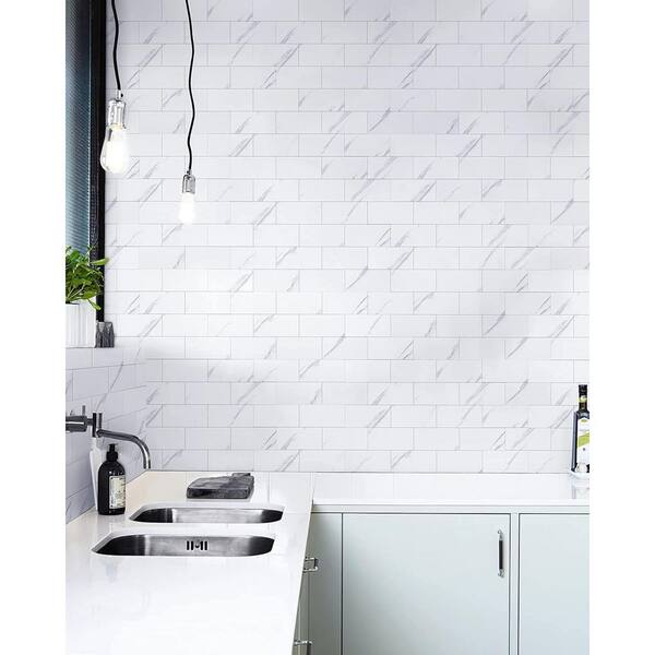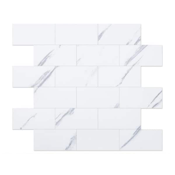 White-Marble 13.5 in. x 11.4 in. PVC Peel and Stick Tile for Kitchen Backplash, Bathroom, Fireplace (9.6 sq. ft./box)