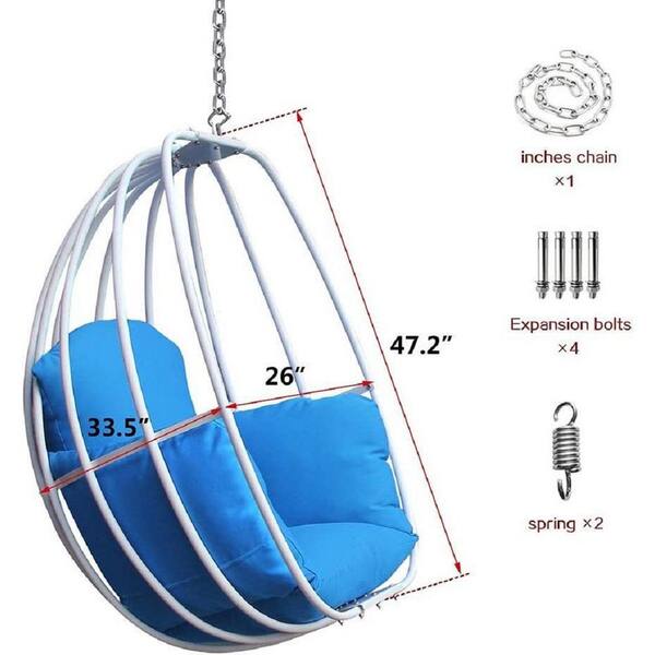 White Metal Porch Swing Hanging Chair Hammock Egg Chair with Blue Cushion and Pillow