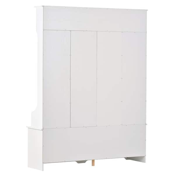 White Modern Style Multiple Functions Hallway Coat Rack with Metal Black Hooks Ample Storage Space and 24-Shoe Cubbies