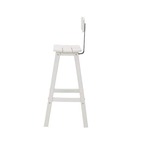 White Plastic HDPE Outdoor Bar Stool with Removable Back (2-Pack)