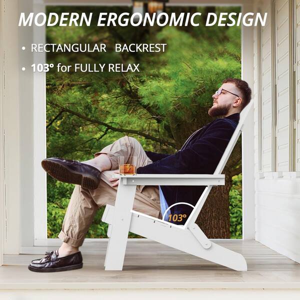 White Plastic Modern Folding Adirondack Outdoor Chair, Patio Chairs (Set of 2)