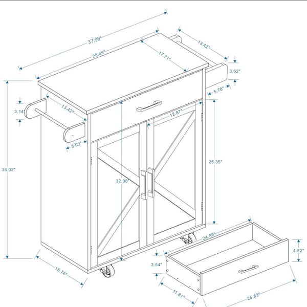 • Rubberwood tabletop and drawers offer versatility