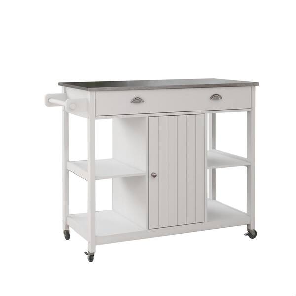 White Rolling Stainless Steel 43.3 in. Kitchen Island with Drawer