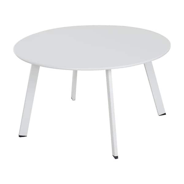White Round Metal Outdoor Coffee Table for Backyard, Patio, Deck