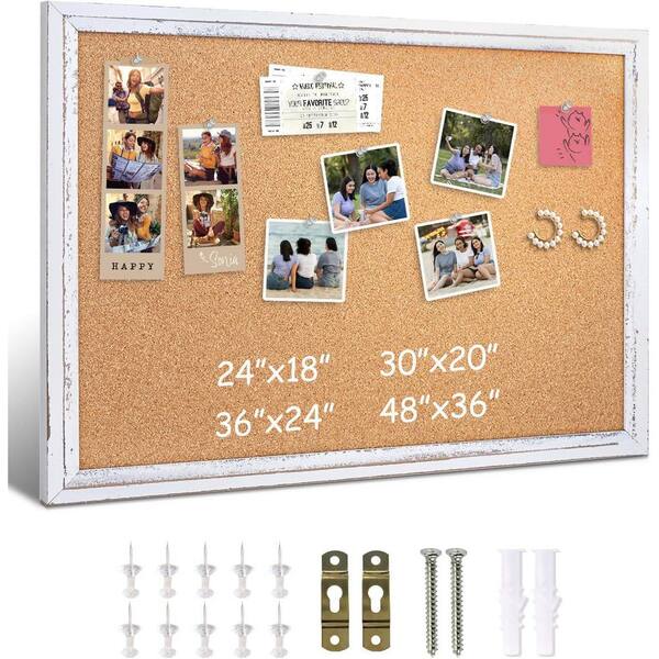 White Rustic Wooden Framed Cork Bulletin Board 24 x 18 in. Hanging Pin Board Easy Install for Office Home Decor