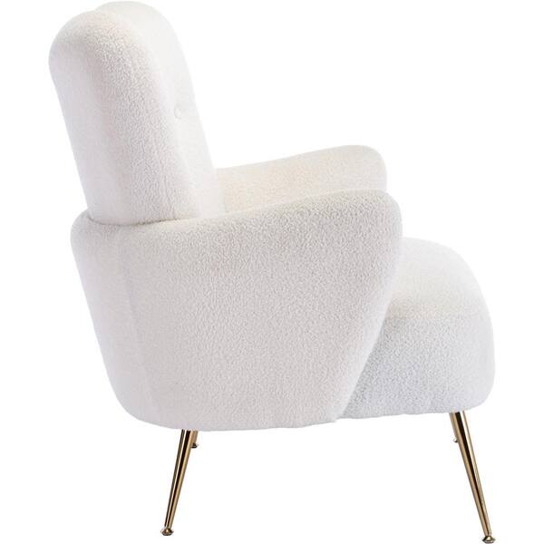 White Soft Teddy Upholstered Three-tufted Buttons Back Arm Chair Ergonomic Design Metal Frame and Legs