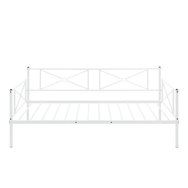 White Stylish Minimalist Twin Sofa Bed with Metal Steel Bar Cross Art Fence